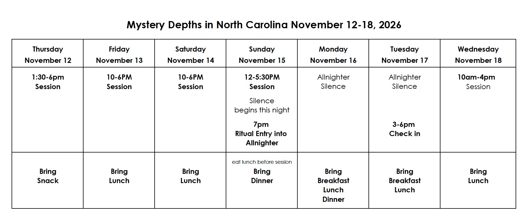 A Continuum Mystery Depths offers a place of refuge and potent communion. Enter the sacred gateway of the body in primordial sounding and fluid movement. Listen in heartful Awareness and “feel” the generative mystery all around and inside. We are nourished in the breathing of the world, in the primal pulse of the living cosmos, and in vast Stillness.